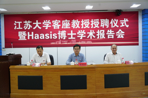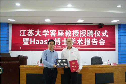 At the appointment ceremony, Li Hongbo warmly welcomed Dr. Haasis and presented him with the Jiangsu University emblem and a letter of appointment as a visiting professor.